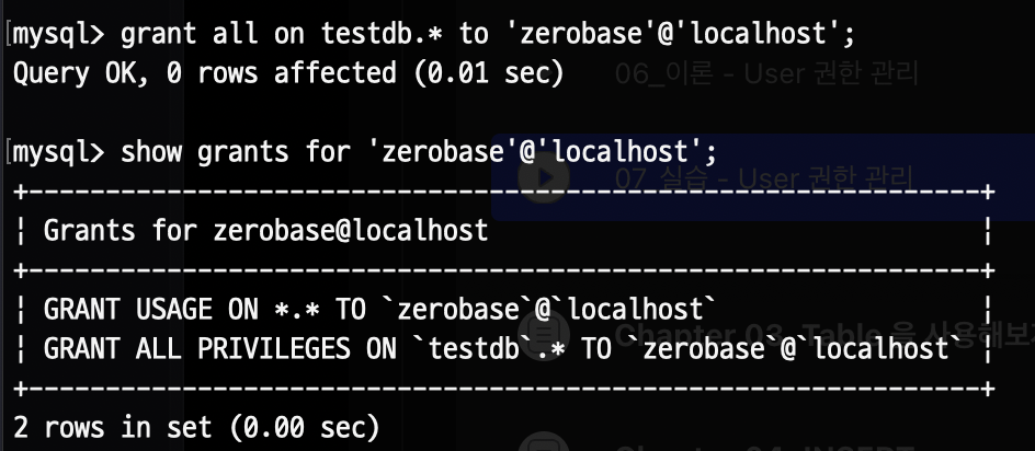 사용자에게 특정 데이터베이스의 모든 권한을 부여
