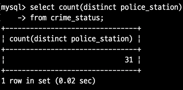 crime_status 테이블에서 경찰서는 총 몇군데?