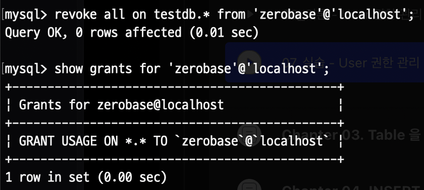 REVOKE ALL ON testdb.* from 'noma'@'localhost';