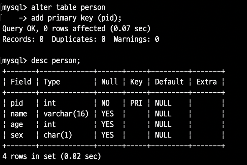존재하는 테이블에 하나의 칼럼을 기본키로 지정하는 경우