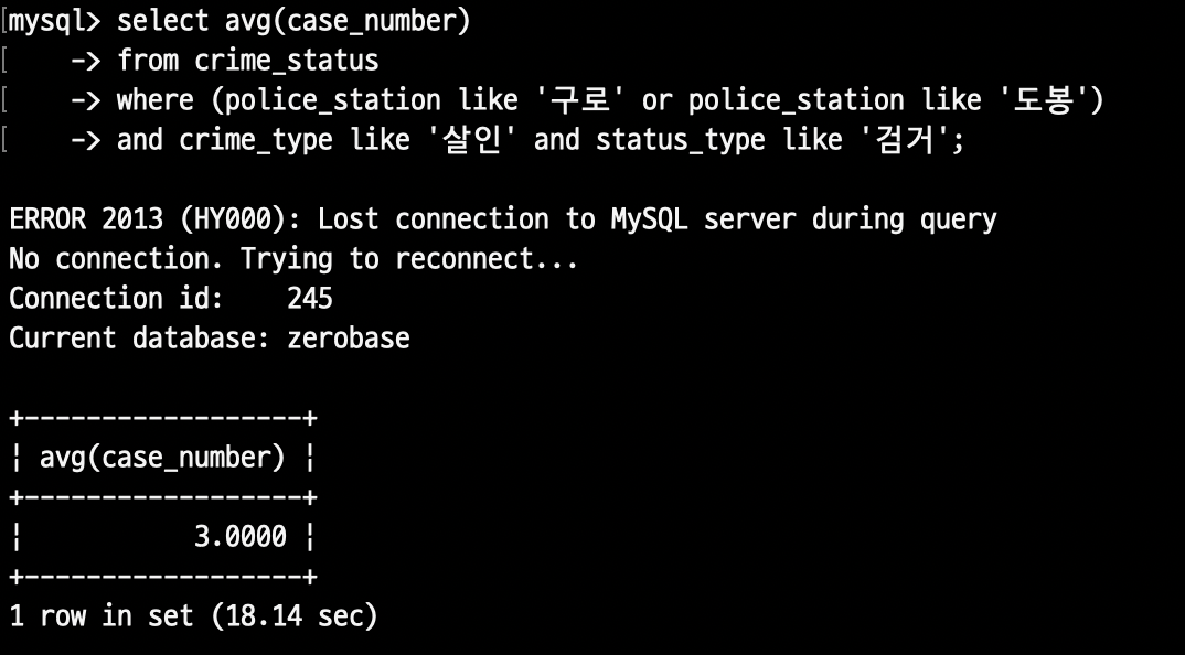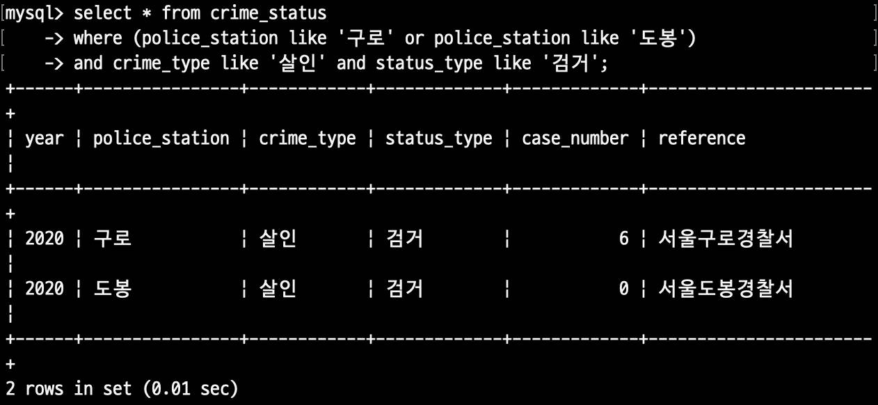 구로경찰서와 도봉경찰서의 평균 살인 검거 건수를 검색하고 확인