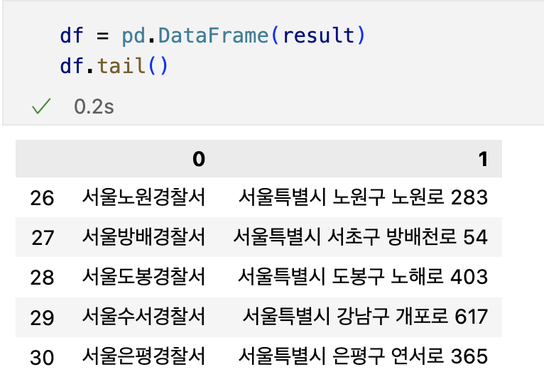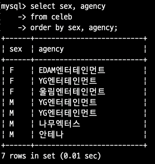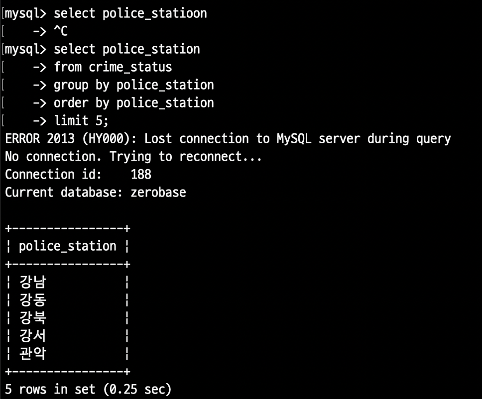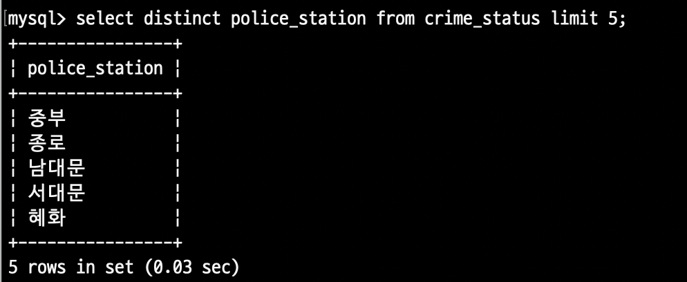 경찰서 종류를 검색 - DISTINCT를 사용하는 경우 (ORDER BY를 사용할 수 없음)