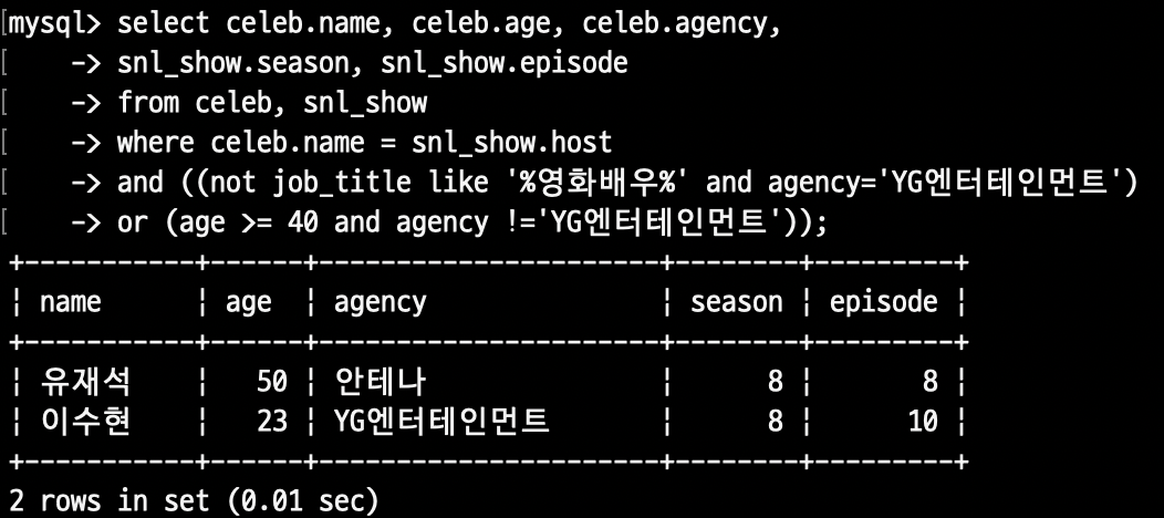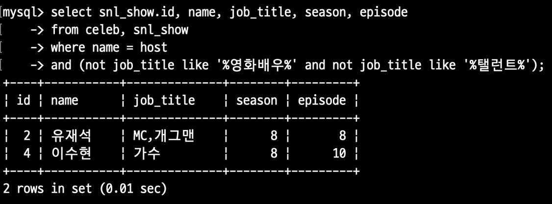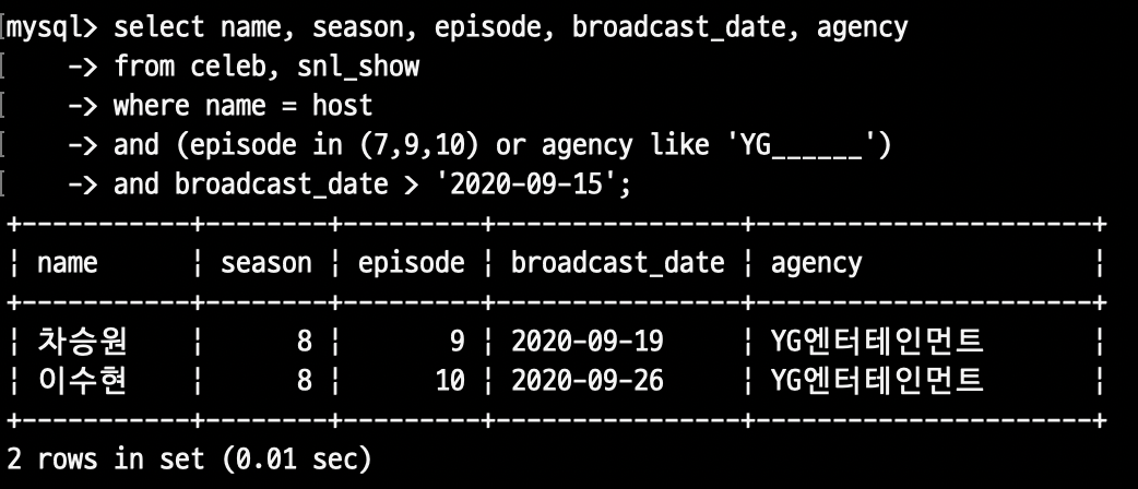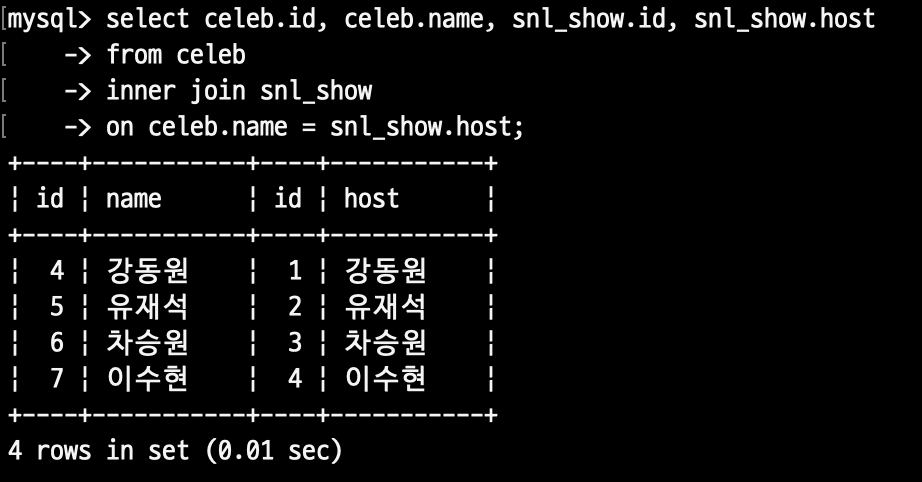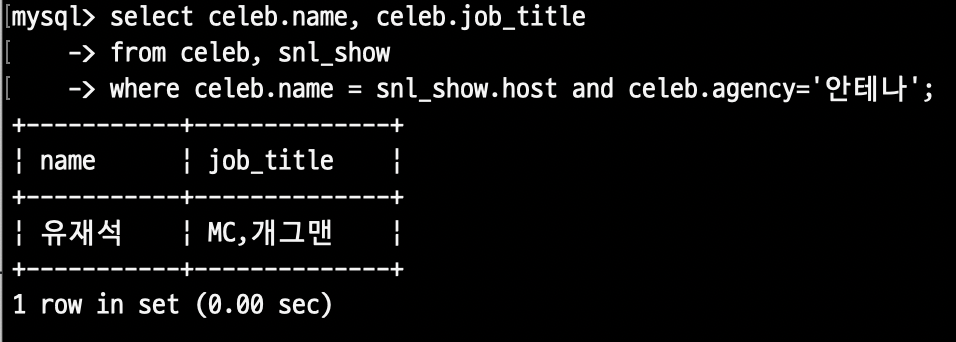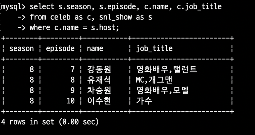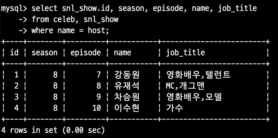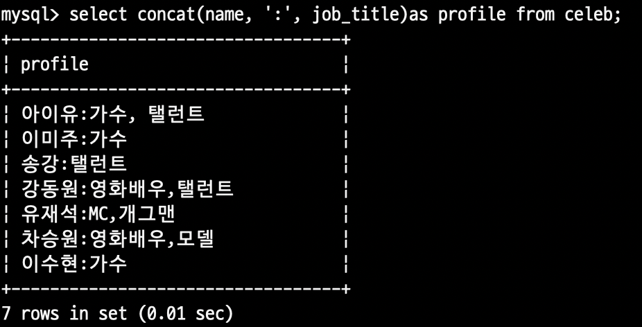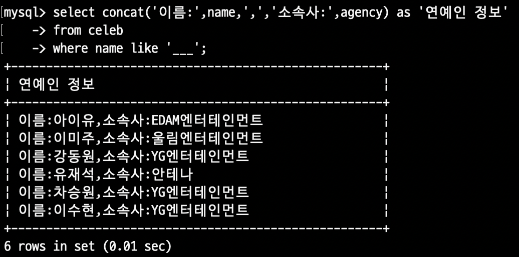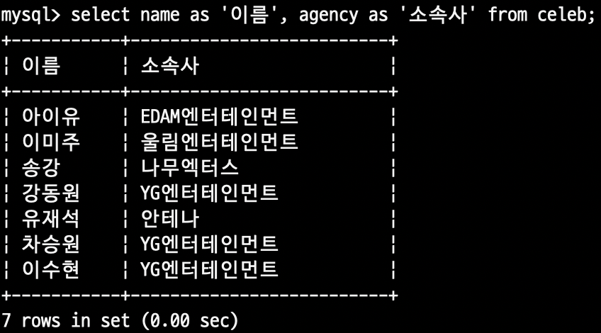 테이블 내의 특정 칼럼에 대한 데이터 조회