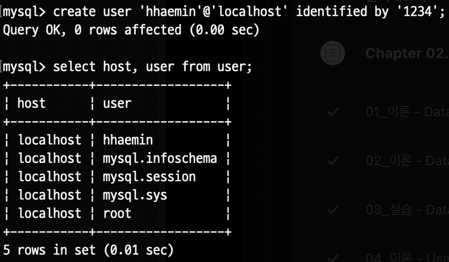 권한 관리를 실습하기 위한 사용자(id:noma@localhost, pw:1234)생성