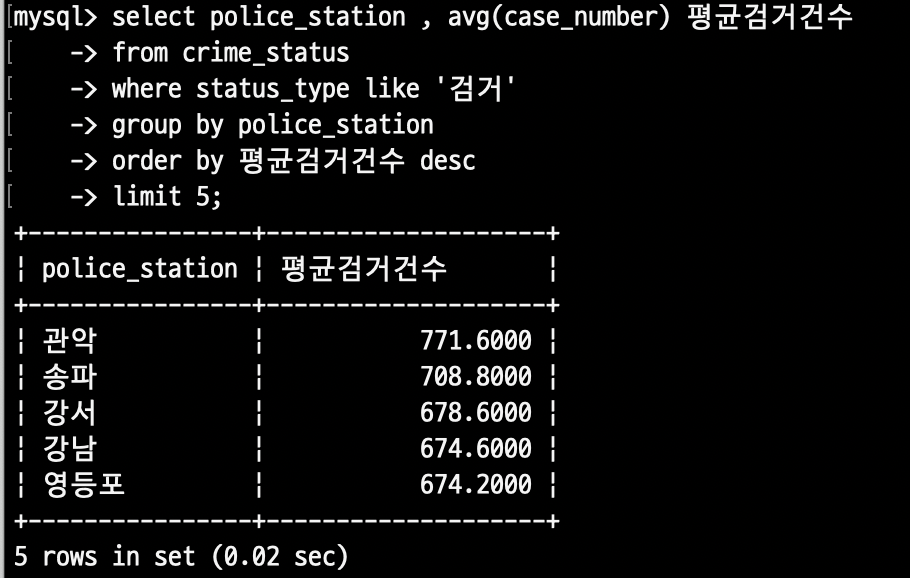 경찰서 별로 평균 범죄 검거 건수를 검색