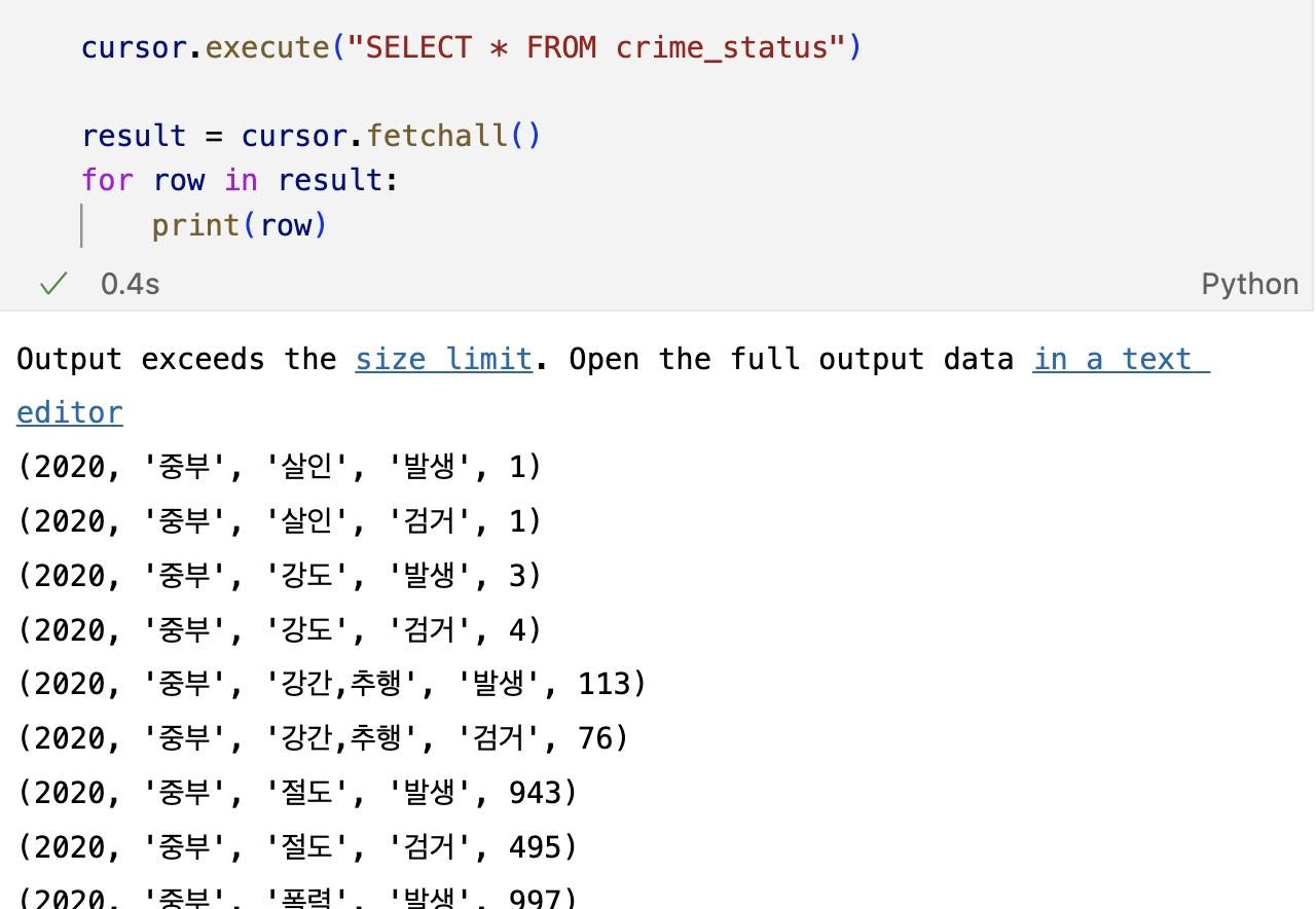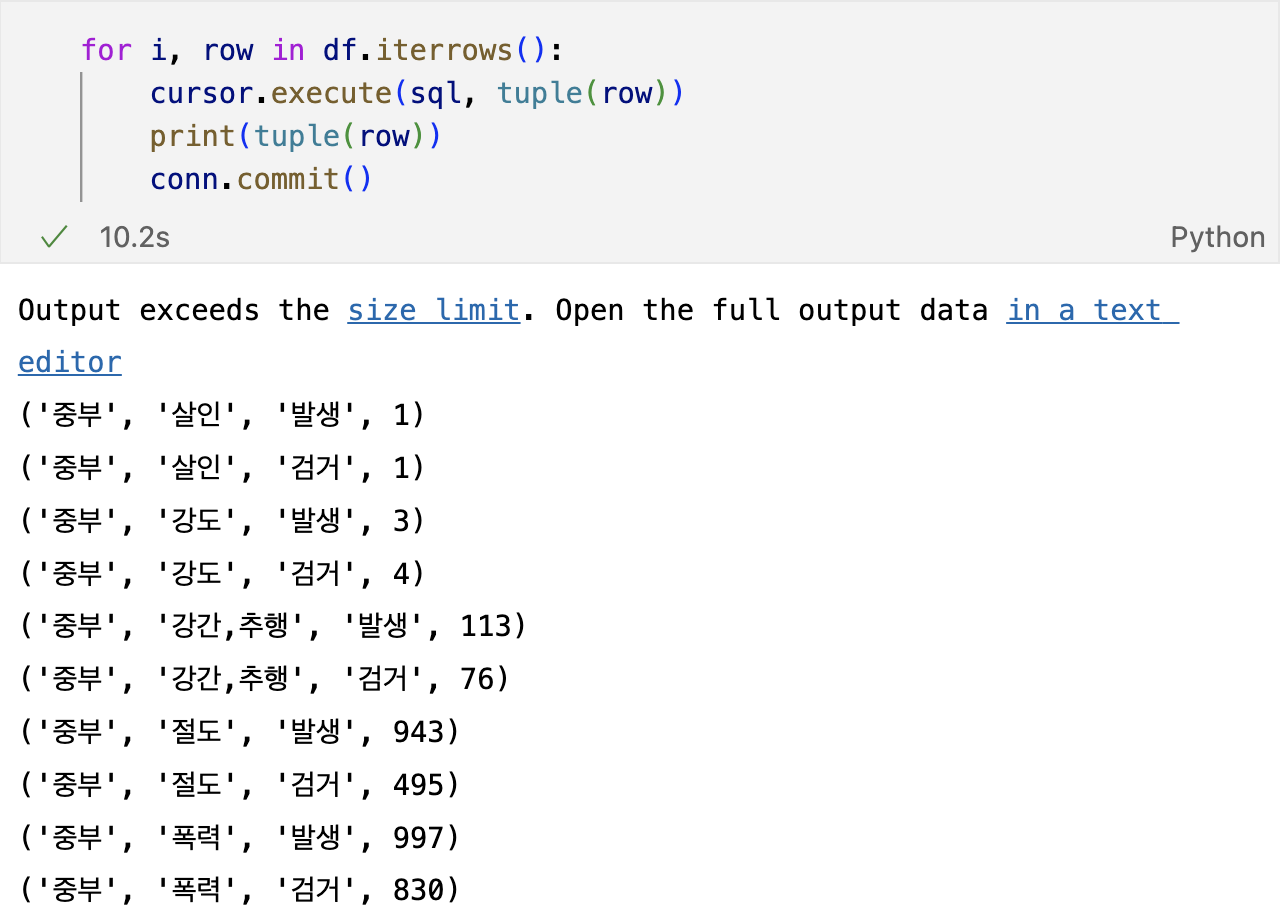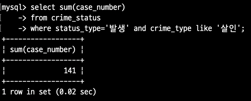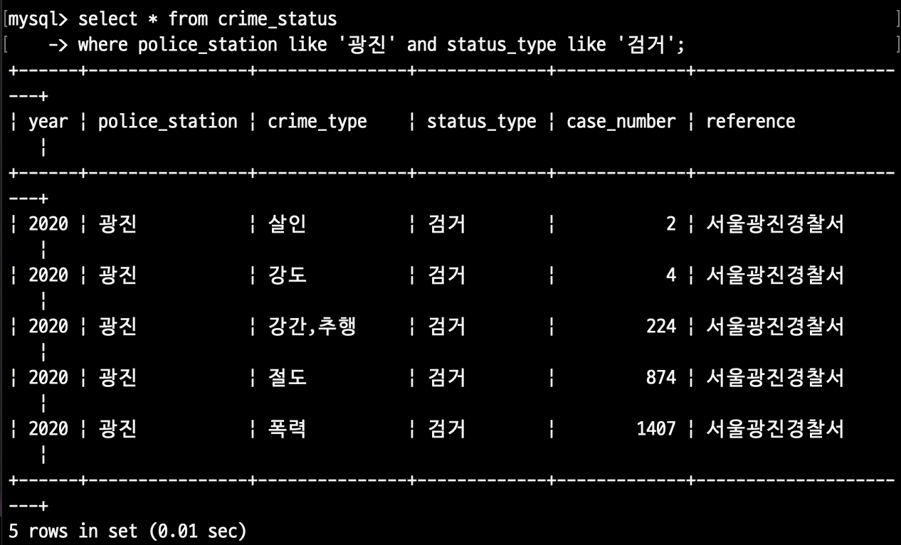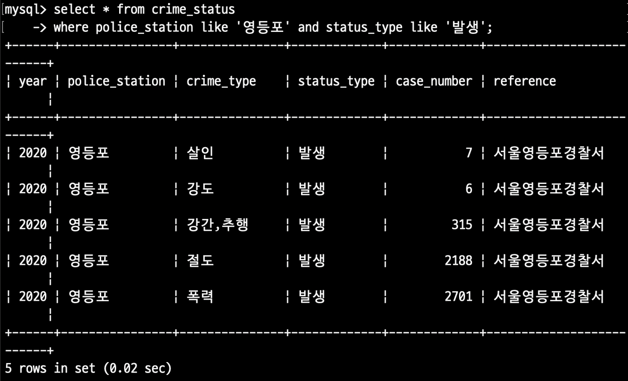 sql = """INSERT INTO crime_status VALUES ("2020",%s,%s,%s,%s)"""