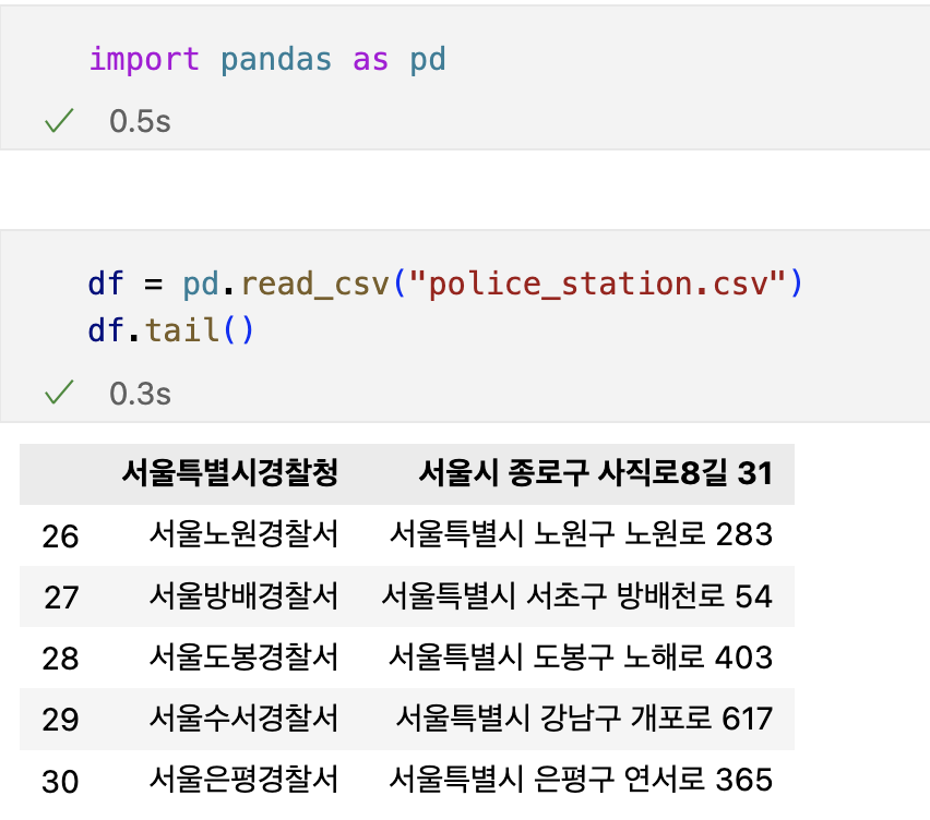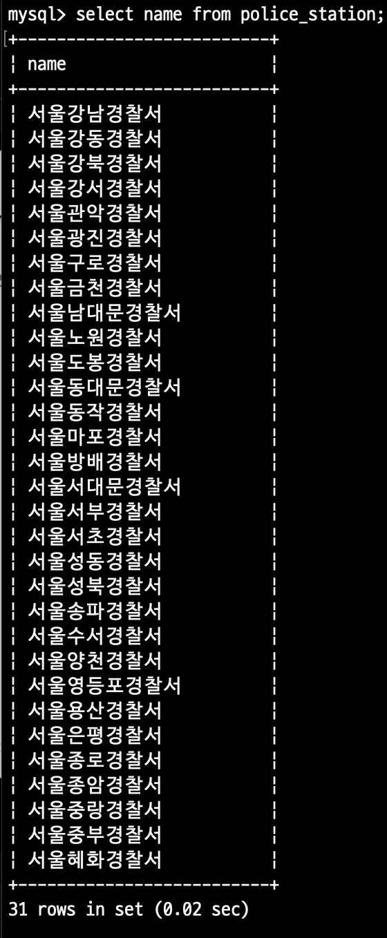 police_station에서 경찰서는 총 몇개이고, 각각 경찰서 이름은 무엇인지 확인하세요