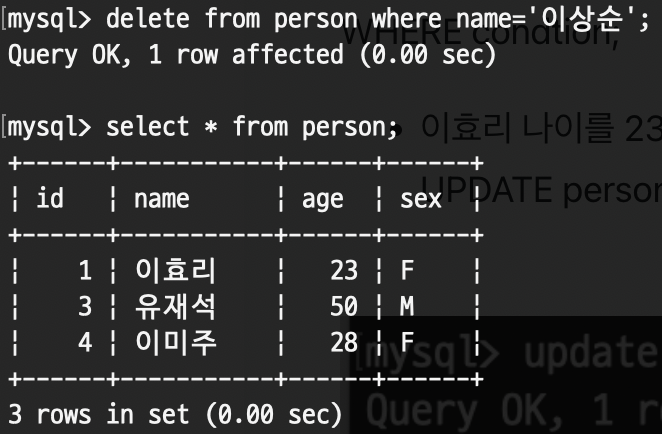 SQL 문에 조건을 추가하며 SELECT 뿐만 아니라 UPDATE와 DELETE에도 사용