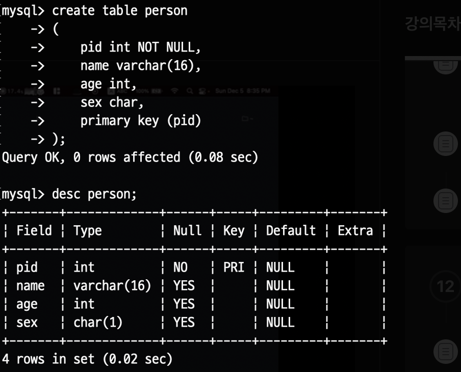 CREATE DATABSE testdb; : testdb라는 이름의 데이터베이스 생성 및 확인