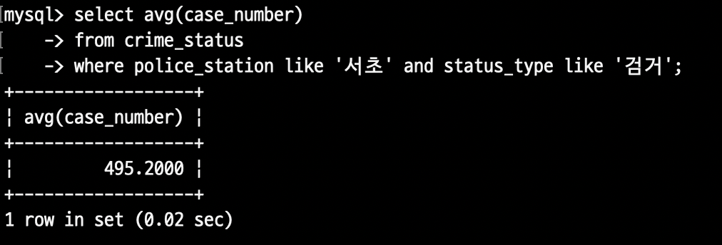 서초경찰서의 범죄 별 평균 검거 건수를 검색하고 확인