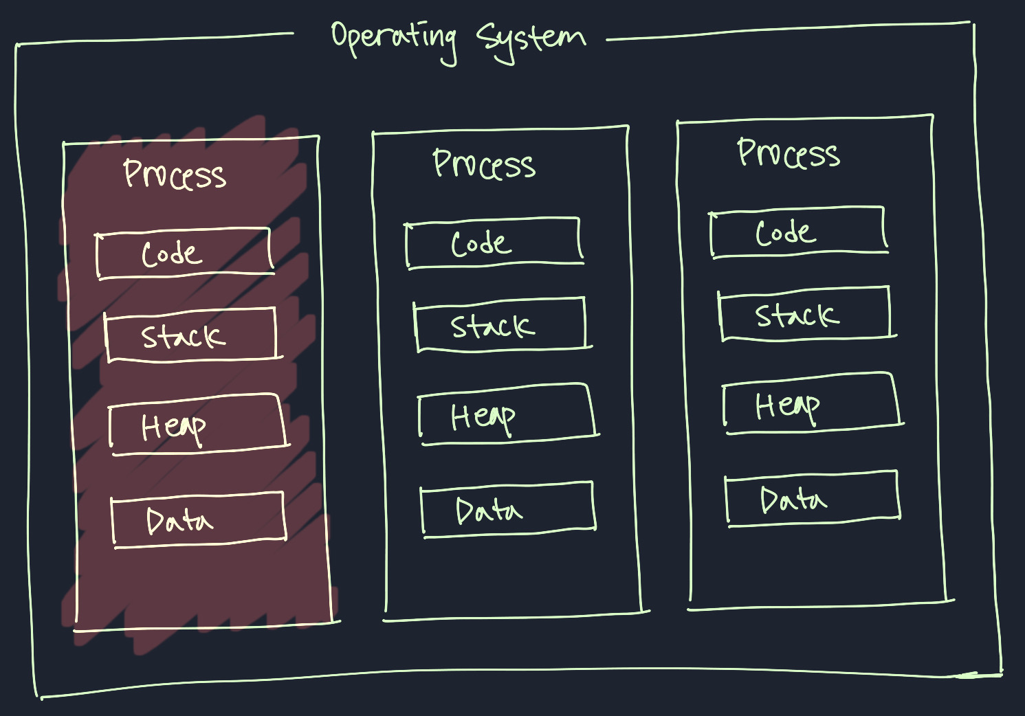 - 각각의 프로세스는 메모리 위에서 실행된다.