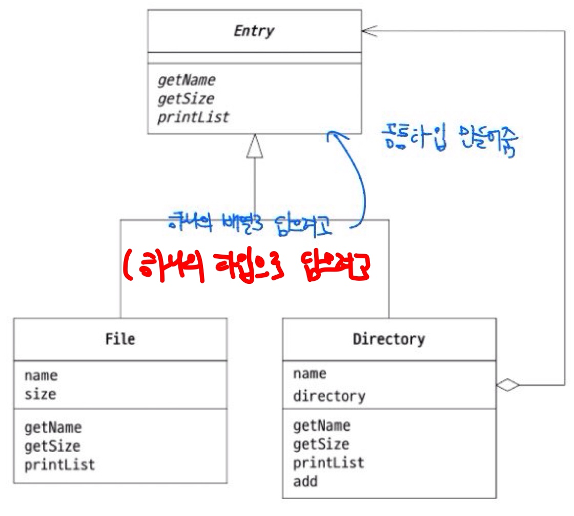 ✅ Keyword : 재귀, 중첩, 트리(일반적으로 트리 구조로 된 자료구조는 Composite 패턴에 해당)