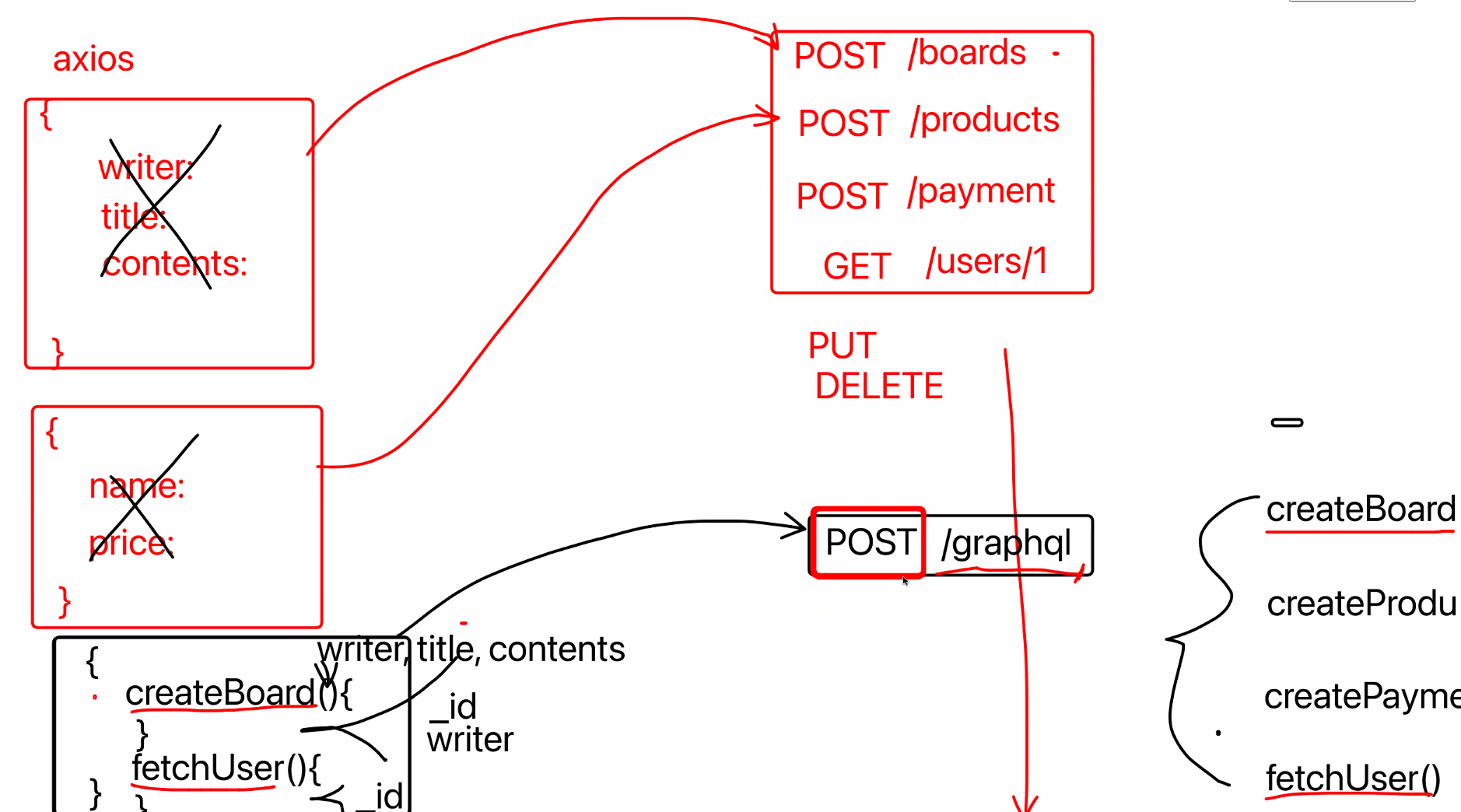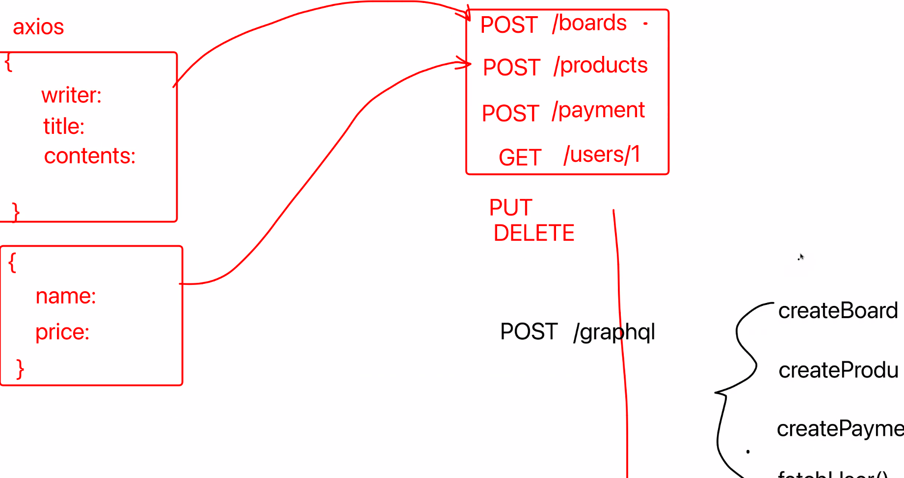 rest-api의 post방식으로 엔드 포인트를 하나로 합쳐서 (graphql이라는 걸로) 뒤에서 함수를 만들고 프론트에서 요청을 한다.