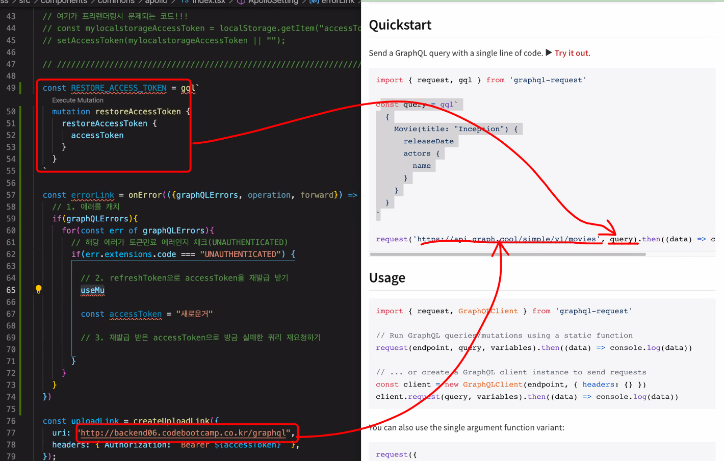 // 3-1. 재발급 받은 accessToken으로 방금 실패한 쿼리 재요청하기