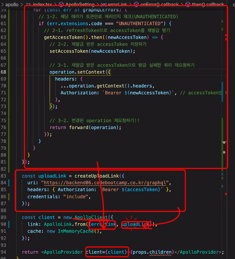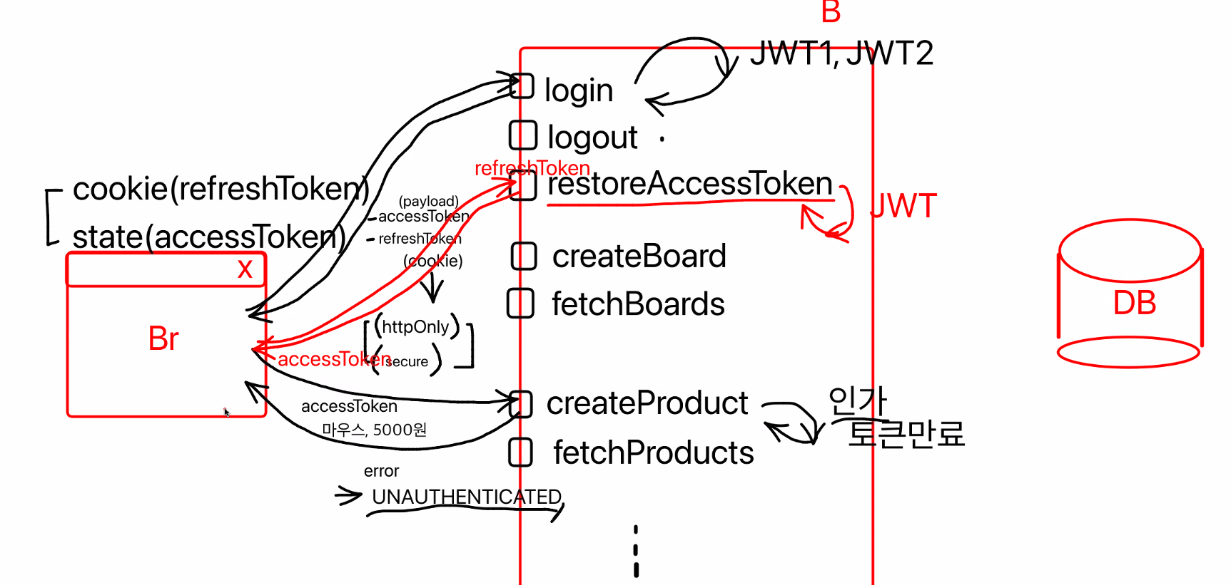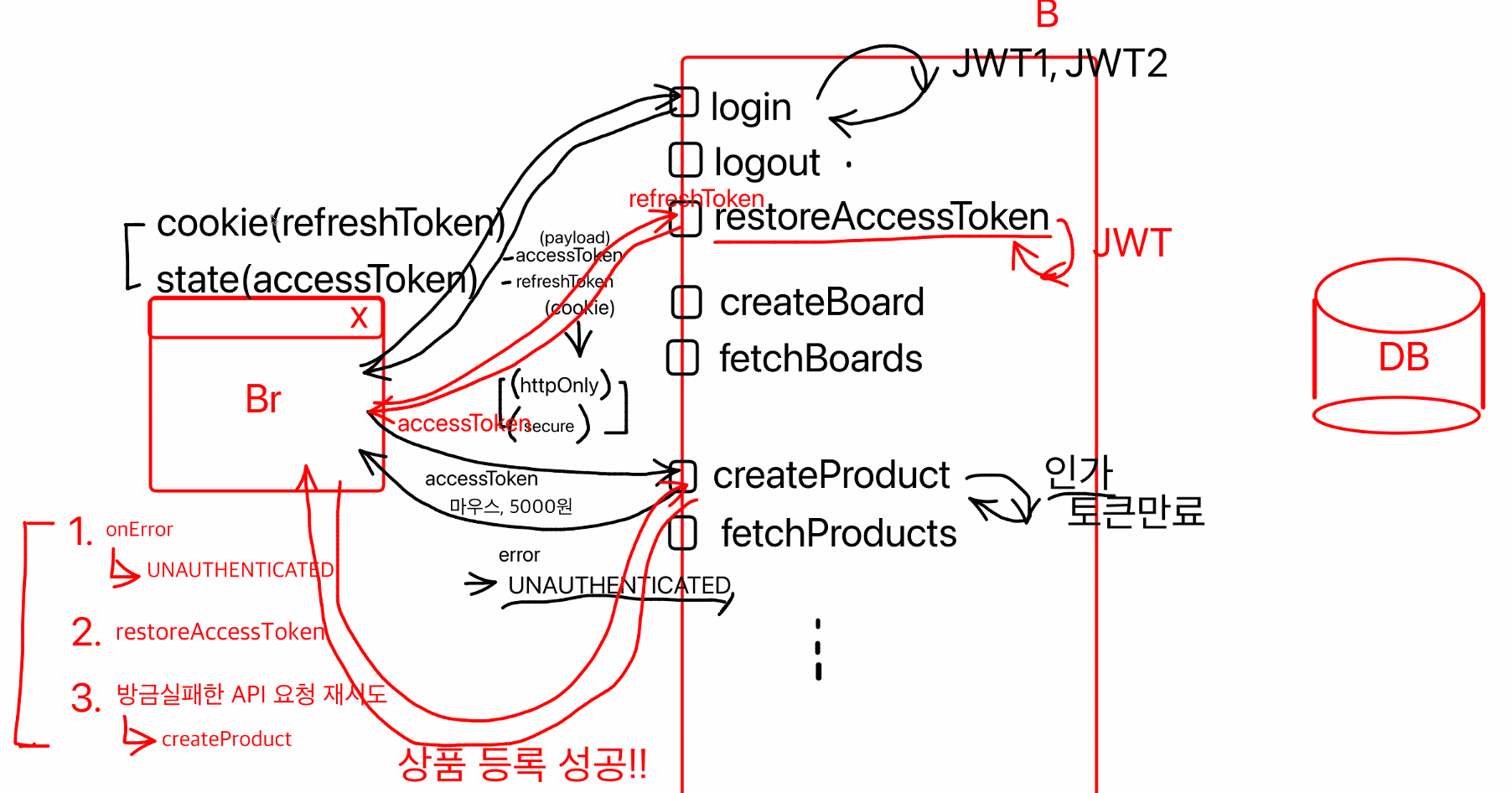 뮤테이션을 하는데 백엔드에서 인가를 하는데 토큰만료가 뜬다면 ? 브라우저에 에러를 던진다.