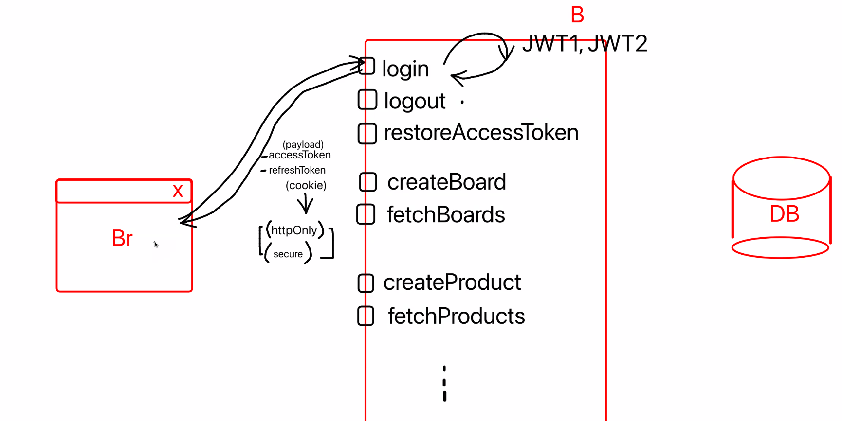 브라우저에서 이메일과 패스워드를 백엔드에 넘겨주면 JWT토큰을 만들어 다시 브라우저에 전송 (accessToken)