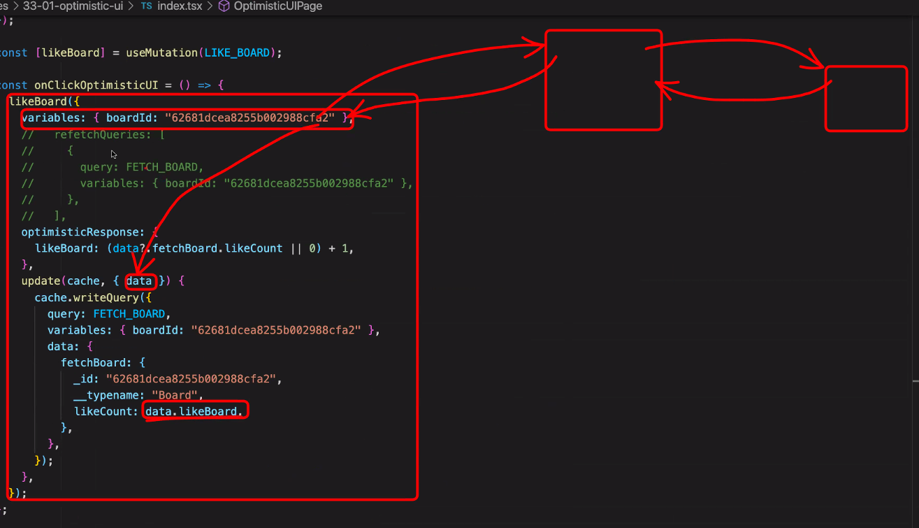 데이터가 오는데 시간이 걸리므로 화면에 먼저 보여주기 위해 optimistic-UI를 쓰는데 낙관적인 데이터를 먼저 받아보겠다.