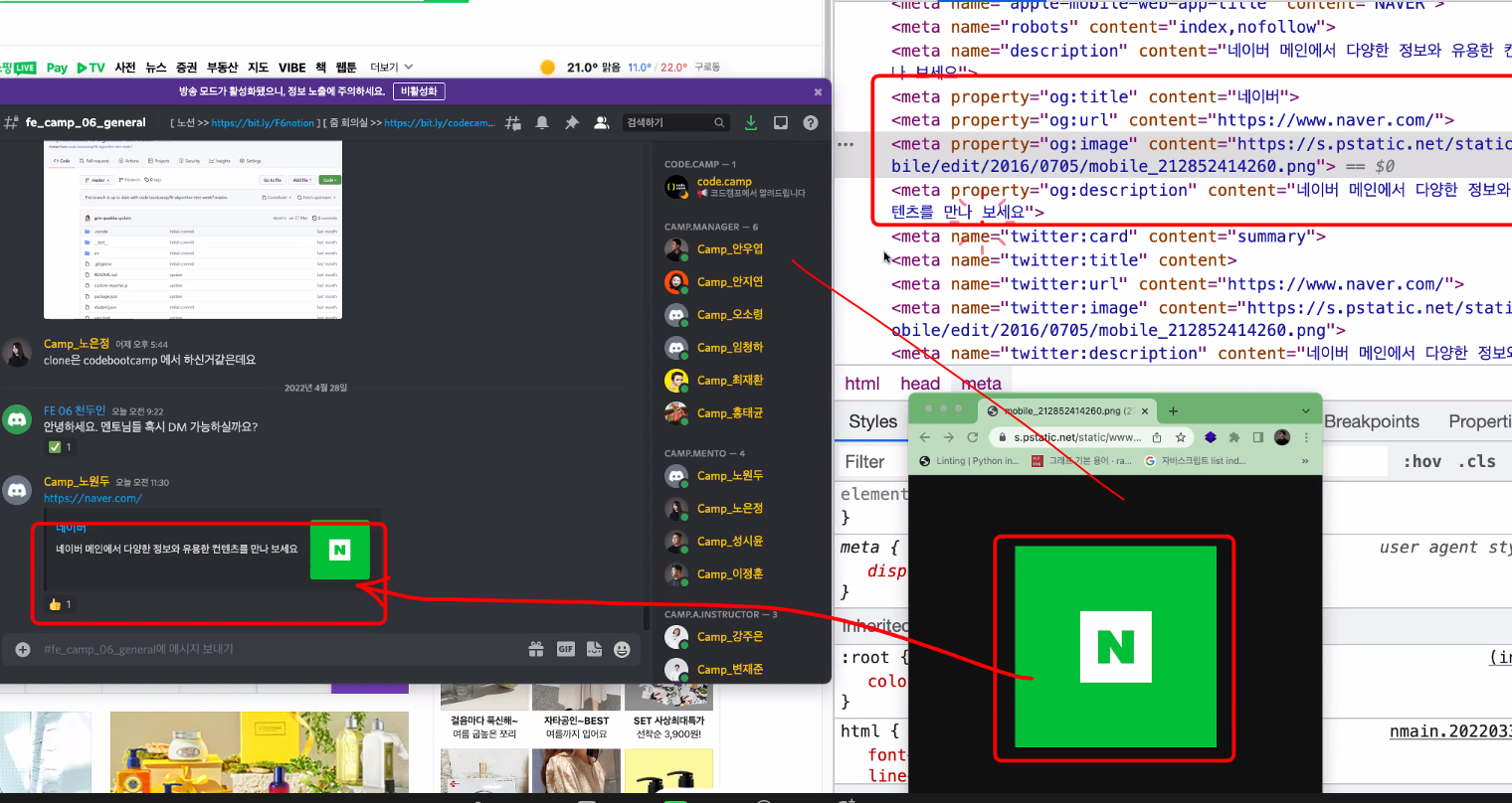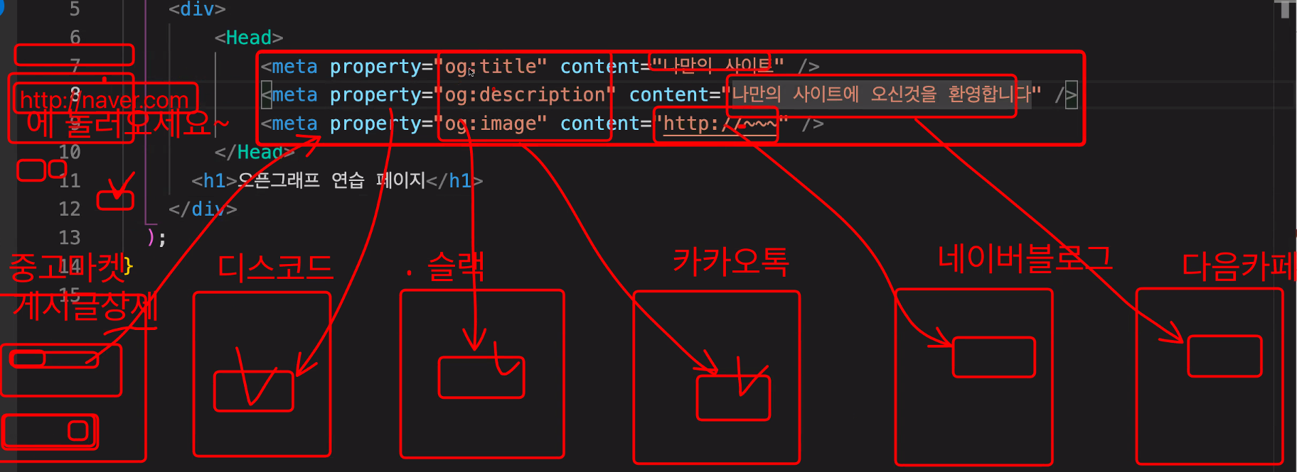 각각의 개발자들이 해당 html의 meta 태그를 스크래핑해서 가져와서 그려주는 것!