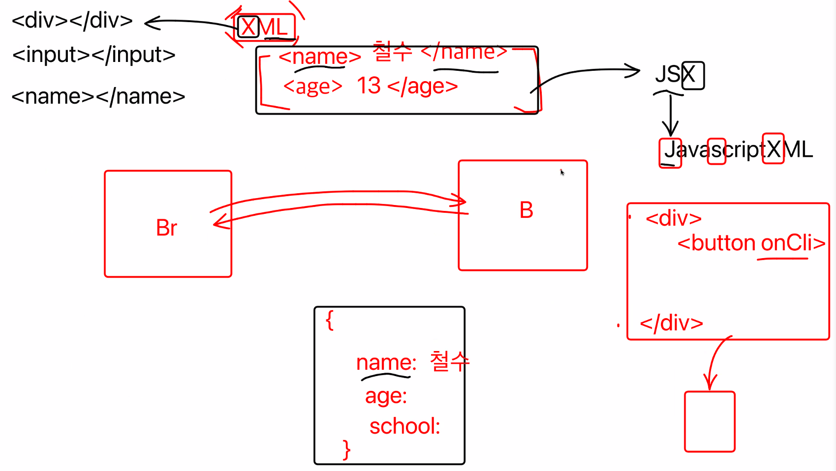 XML에서 파생된 것이 JSX(JavascriptXML)