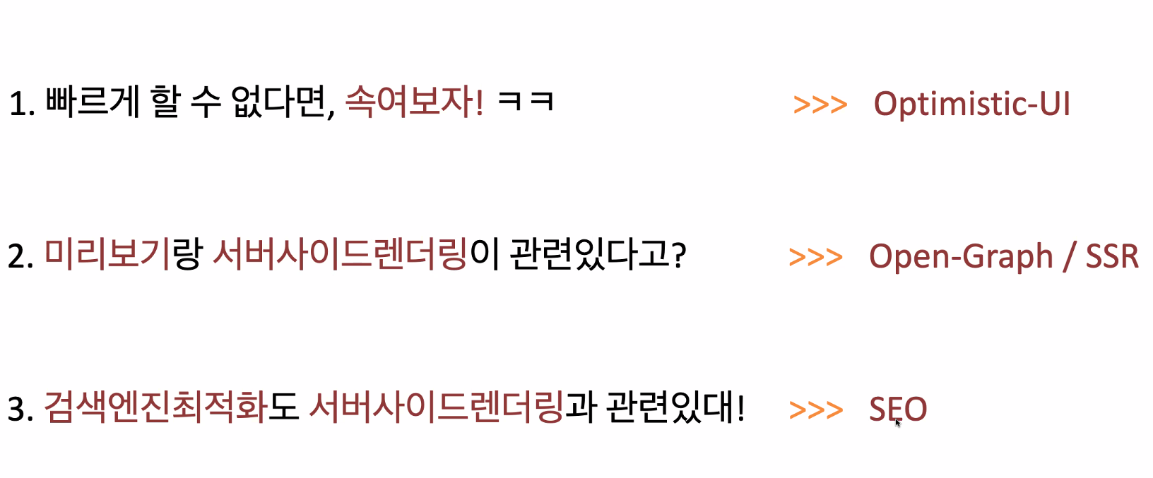 메타가 바뀌어야 한다거나, 검색엔진에 등록이 되어야 한다거나, 일반적으로 게시글 상세내용에 서버사이드렌더링이 필요하다.