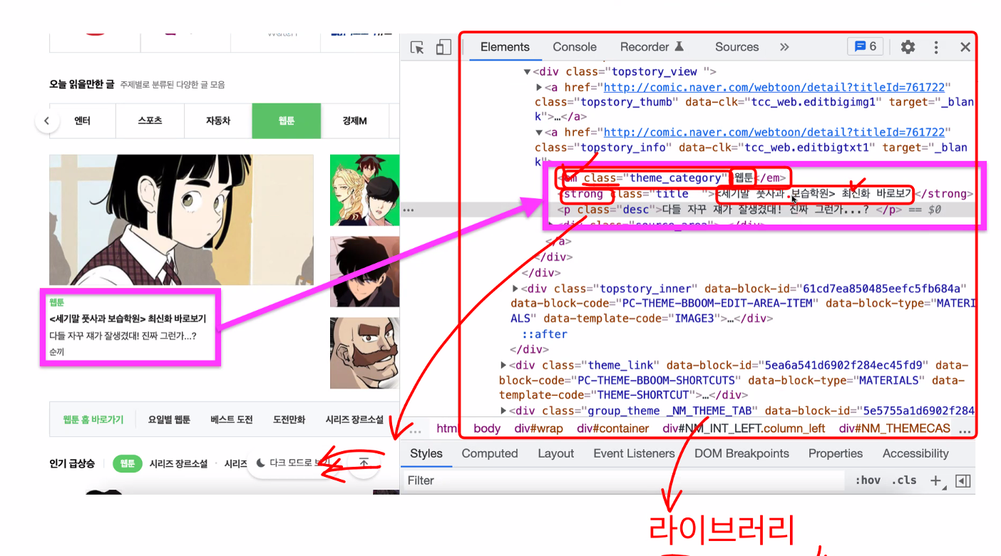 => 라이브러리로는 Cheerio, Puppeteer을 사용한다
