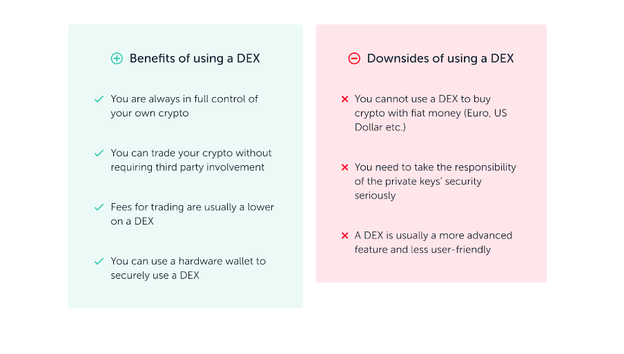 DEX는 사용자가 직접 개인키를 보유한다. 사용자가 완전한 암호화폐의 통제권을 가지고 있다.