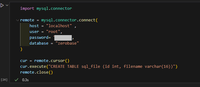 ERROR 1146 (42S02): Table 'zerobase.sql_file' doesn't exist