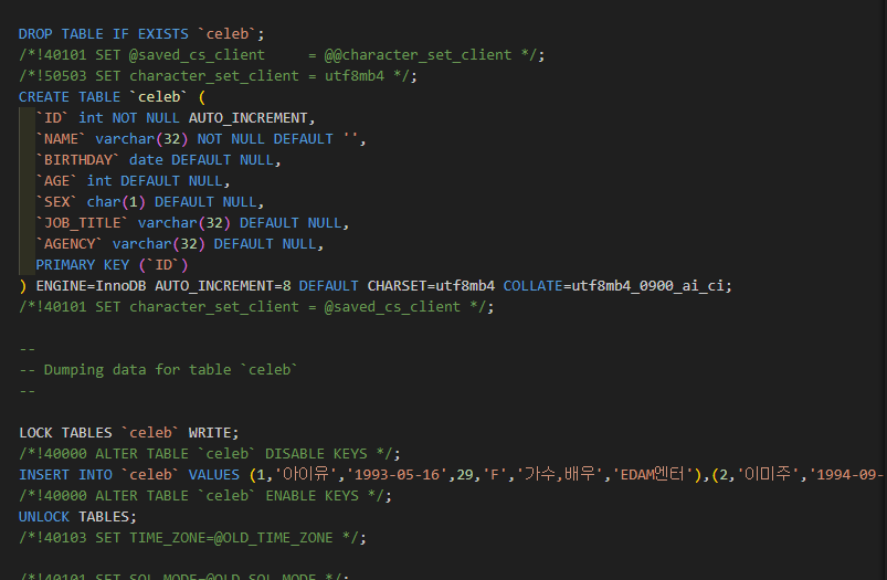 📌 비교 : celeb.sql은 data 포함