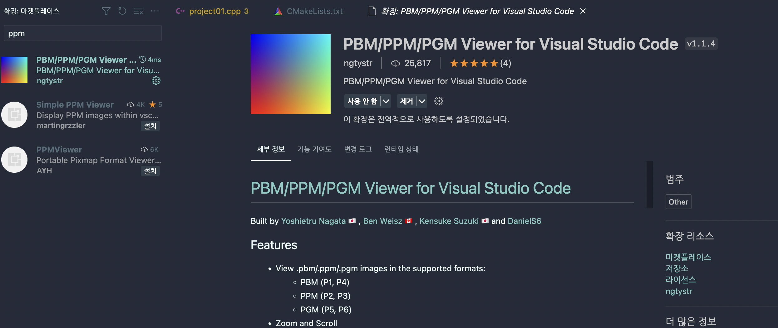 vscode에서 ppm viewer 를 설치해 주었다.
