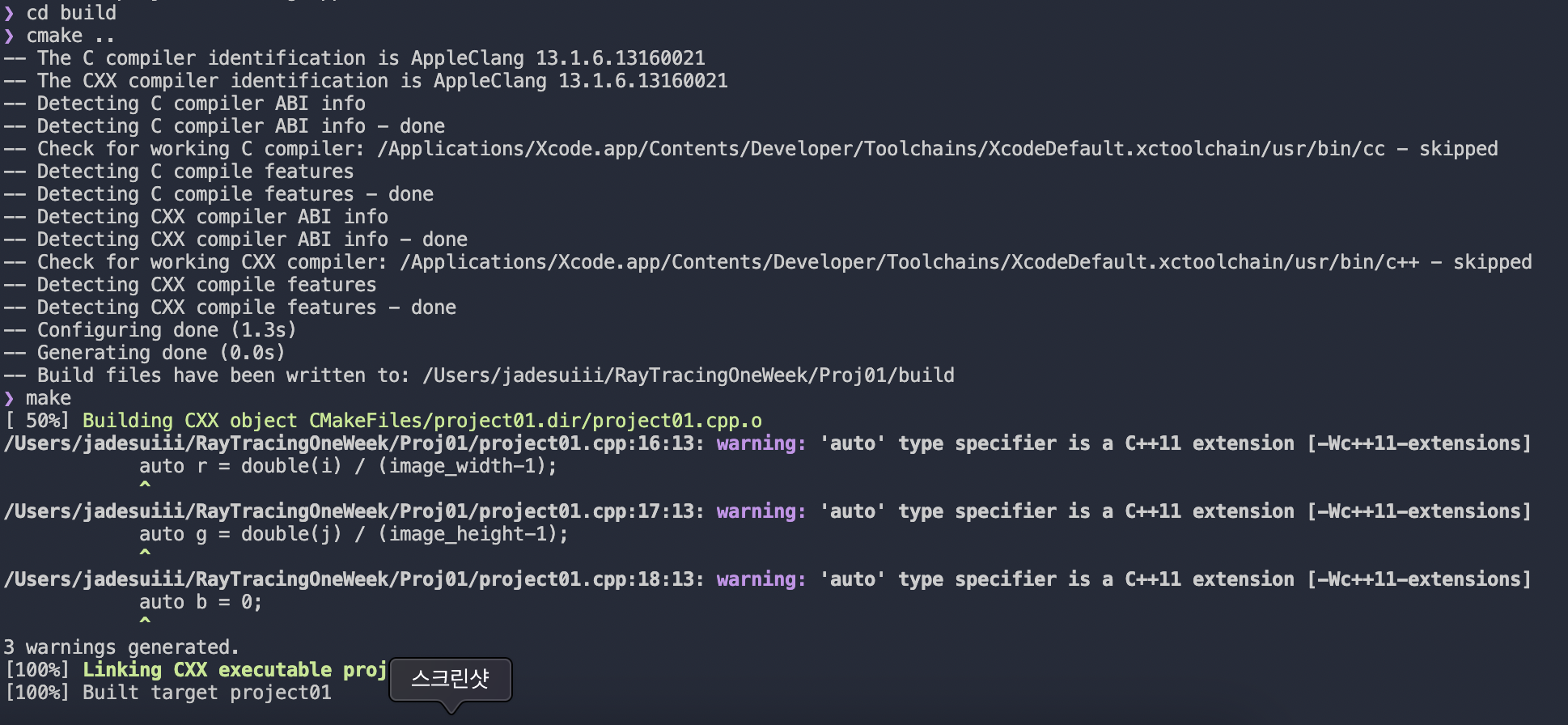 💬 먼저, cmake를 사용하여 빌드 파일을 만들어 주었다.