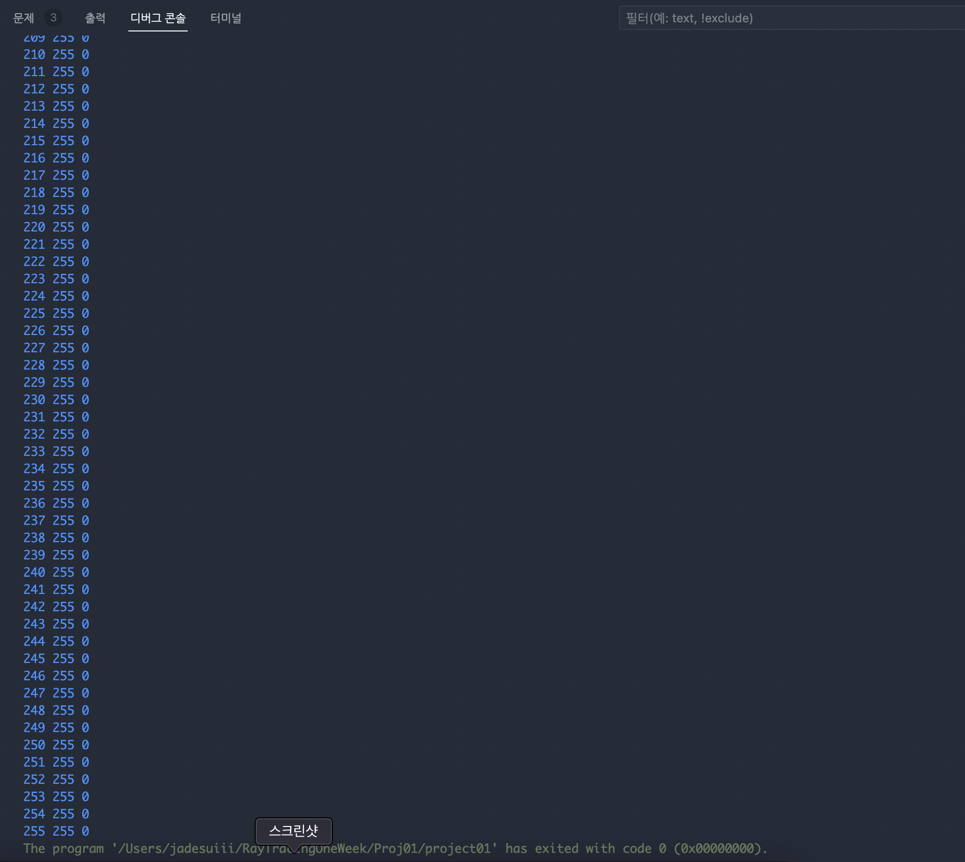 호다닥 실행되느라 진행률이 잘 안보이지만, 나중에 Raytracer를