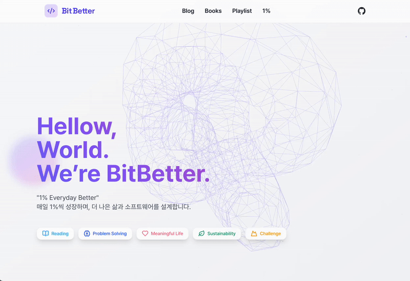 남과 비교하지 말고 어제의 나보다 1%씩 더 성장하자는 의미로 Bitbetter이라고 이름을 지었습니다.