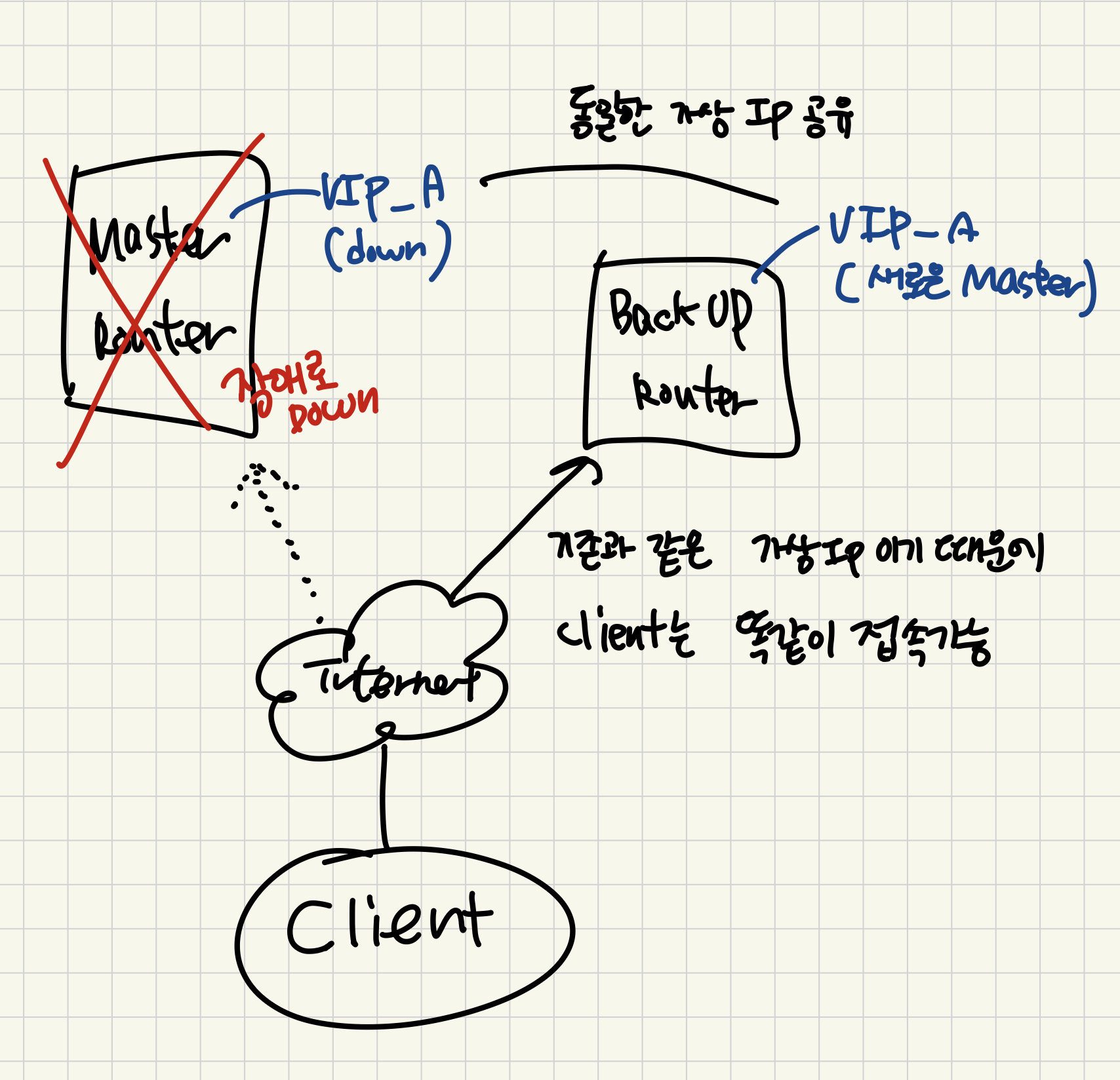 새로운 master가 된 후 “Gratuitous ARP”라는 “이 VIP는 이제 내가 이어받았다”라는 프레임를 네트워크에 보낸다
