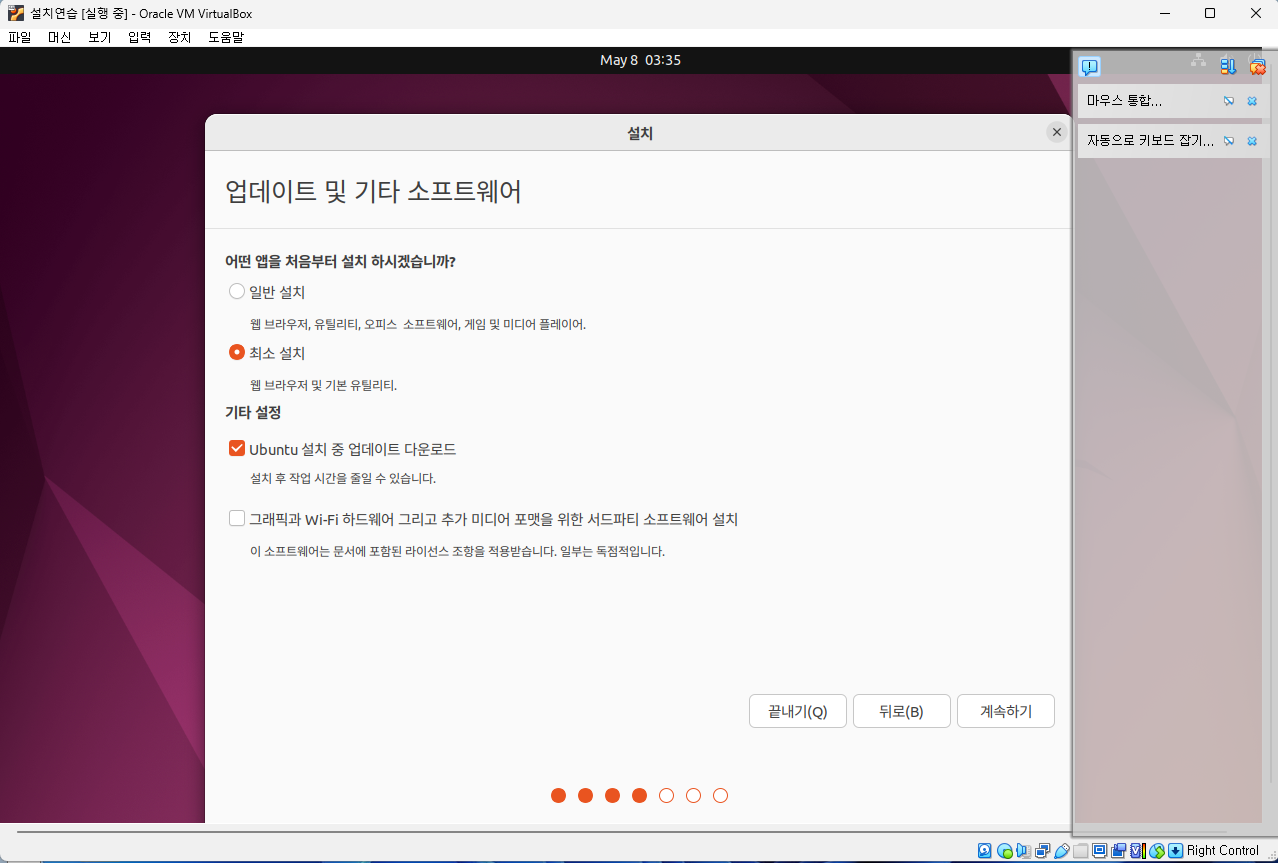 4. 설치 시간을 최소화하기 위해 최소 설치로 설정 변경. 기본은 일반 설치로 설정되어 있음.