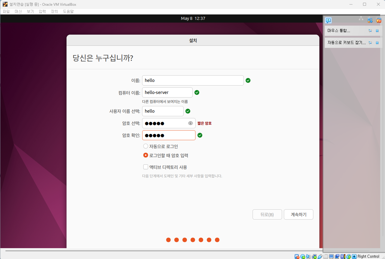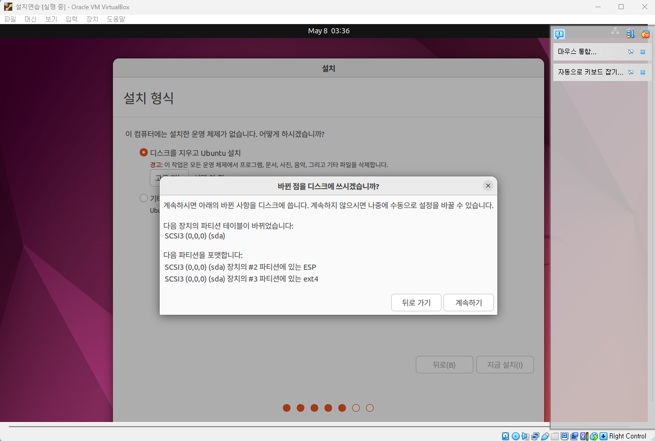 이후 해당 계정을 실행하여 ubuntu를 설치하는 과정이 추가된다.