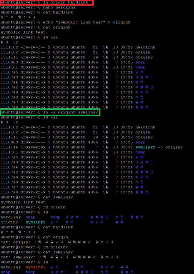 - 하드링크와 소프트링크가 있다. 이 둘은 삭제 시 차이가 있다.