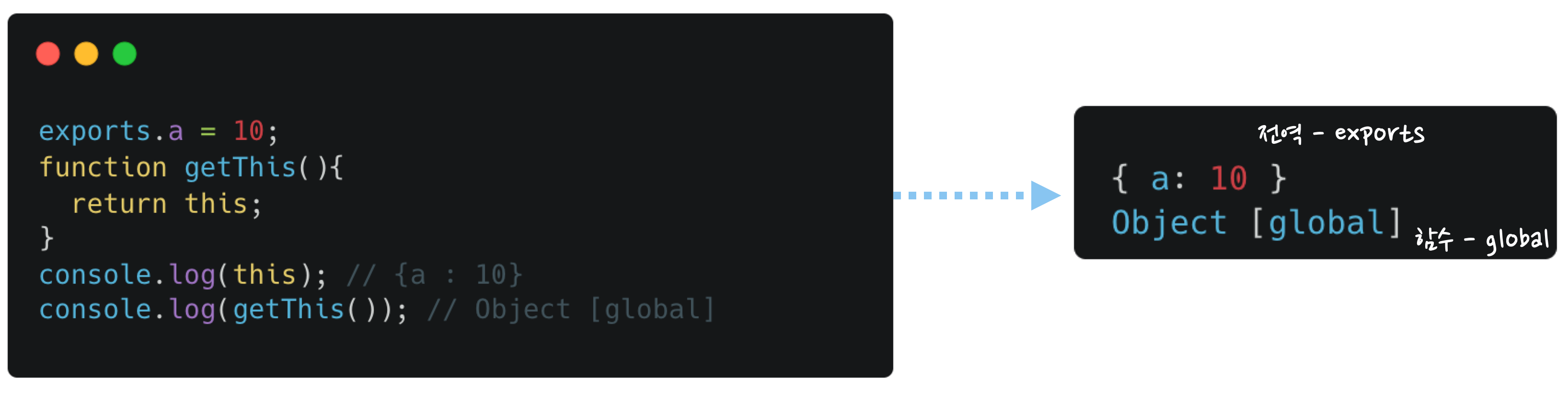 즉 this가 참조하고 있는 것은 module.exports 객체입니다.함수를 통해 this를 출력한 경우