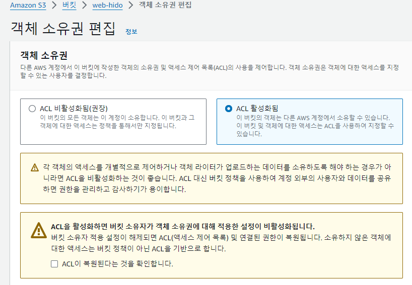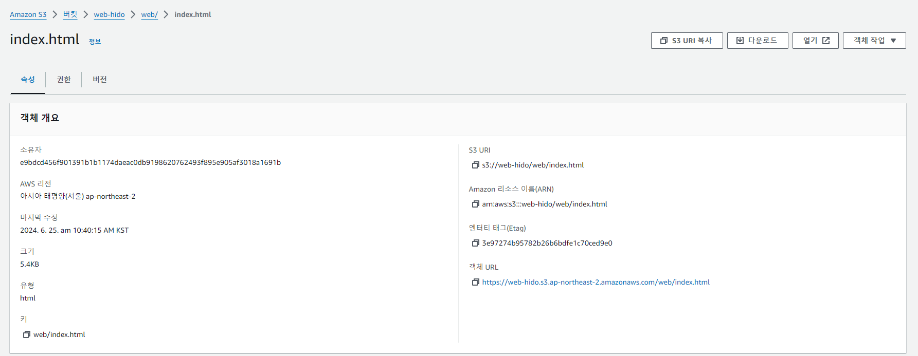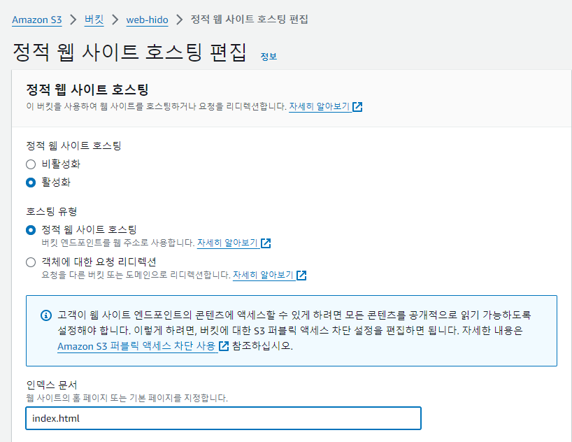 활성화 클릭 후 index.html 입력 후 변경사항 저장 클릭