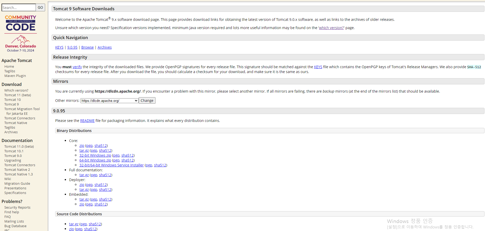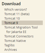 여기서 'Tomcat 9'를 클릭하면