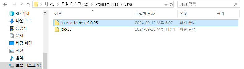 설치가 완료되면 'C:\Program Files\Java' 이 경로로 압축을 풀어준다.