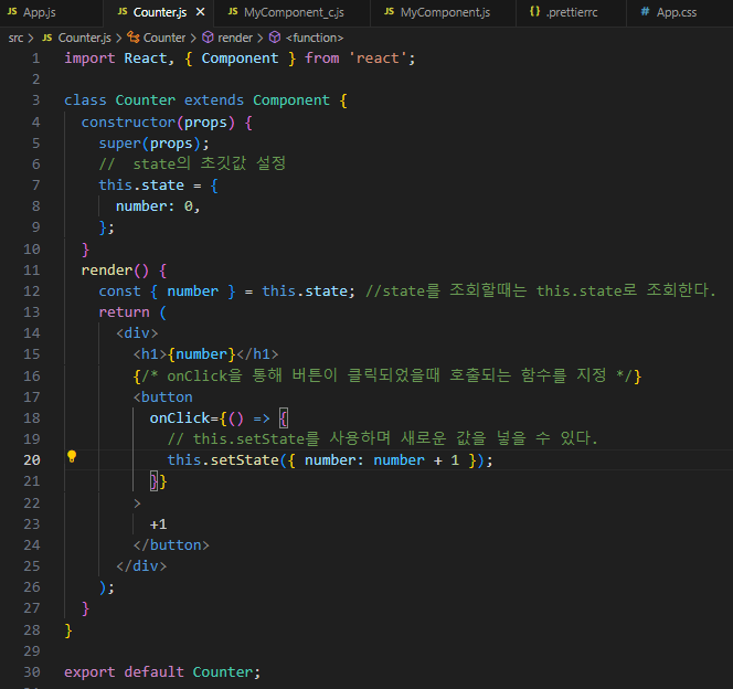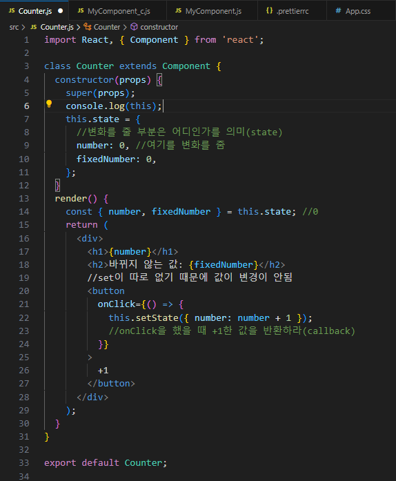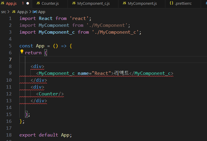 rcc + tab ->component 기본 설정 (클래스형 컴포넌트)