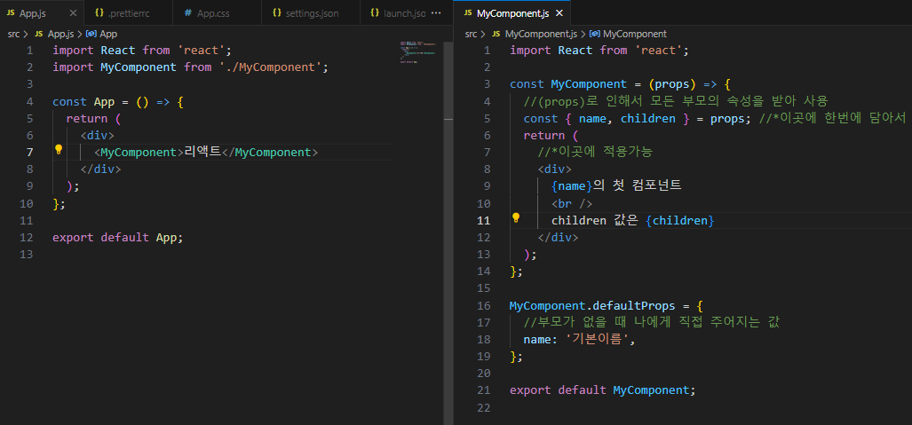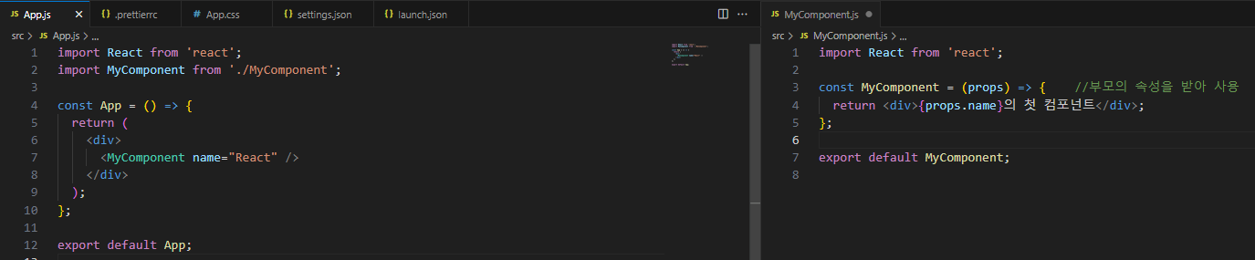 (App에서 MyComponent를 사용할 수 있는 것은 export를 사용했기 때문이다)