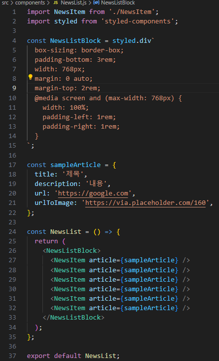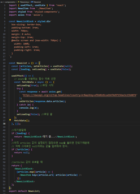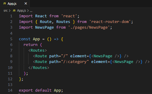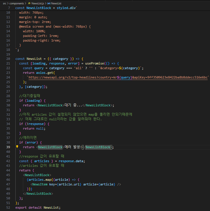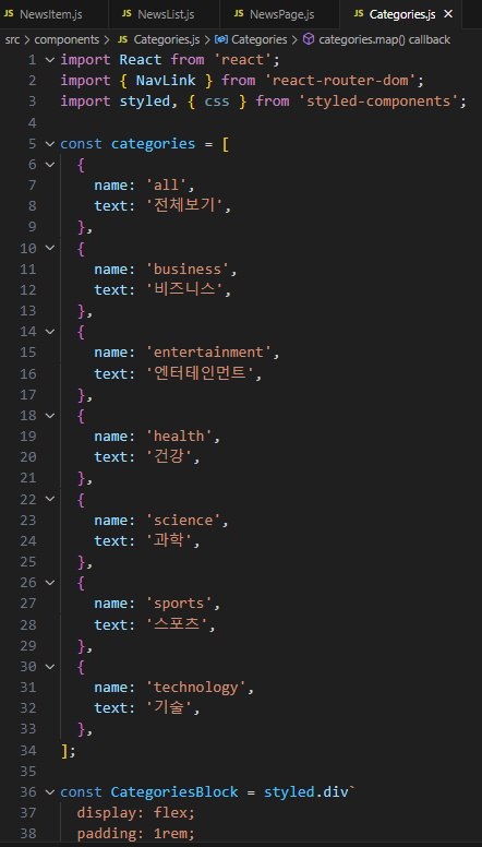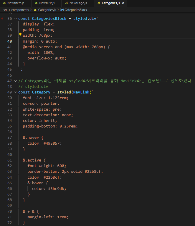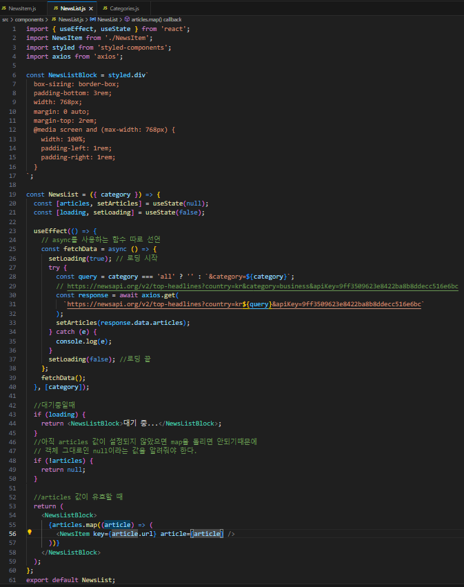 또, category값을 NewsList 컴포넌트에게도 전달해 줘야한다.