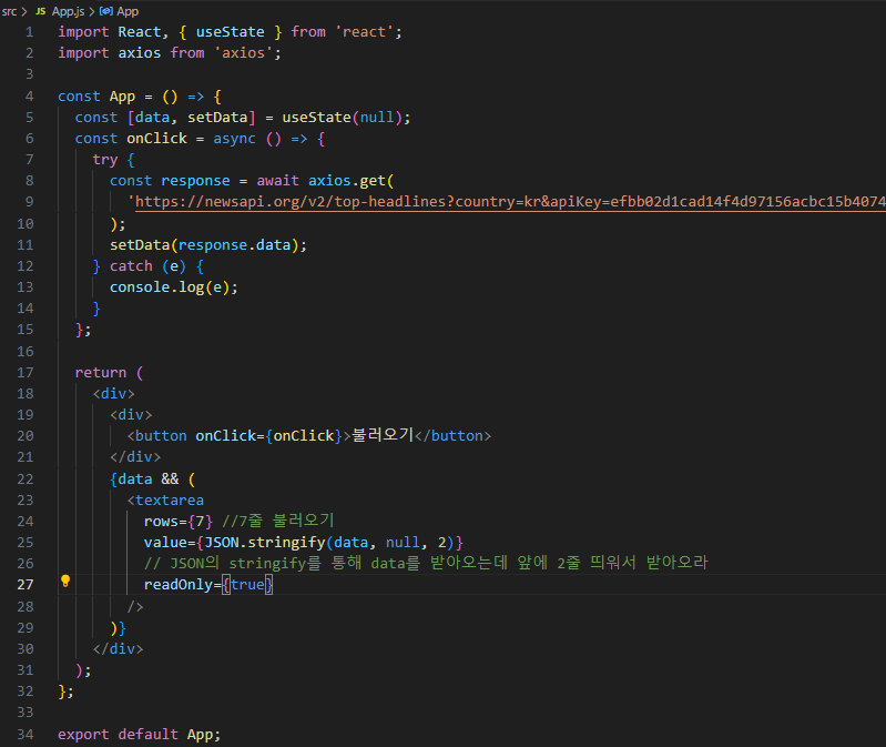 axios로 api로 호출해서 데이터 받아오기 -> newsapi API 키 발급받기 -> 뉴스 UI만들기 -> 데이터 연동 -> 카테고리 기능 구현 -> 라우터 적용하여 템플릿 제작