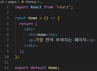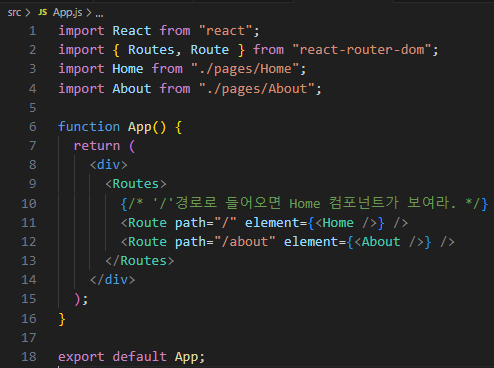 App -> Home.js -> Link to~ 선택하면 해당 컴포넌트가 보여진다
