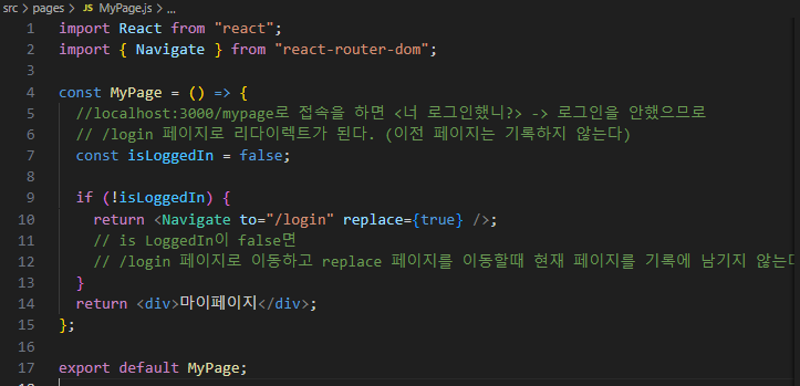 컴포넌트를 화면에 보여주는 순간 다른 페이지로 이동하고 싶을때, 페이지 리다이렉트(redirect)