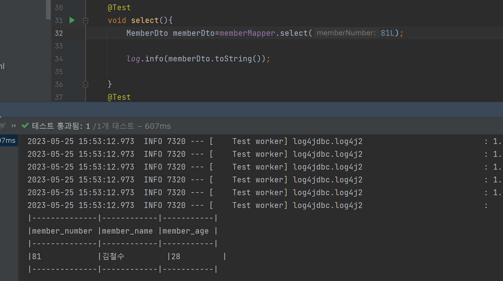 public MemberDto select(Long memberNumber): 주어진 회원 번호에 해당하는 MemberDto를 데이터베이스에서 조회합니다.