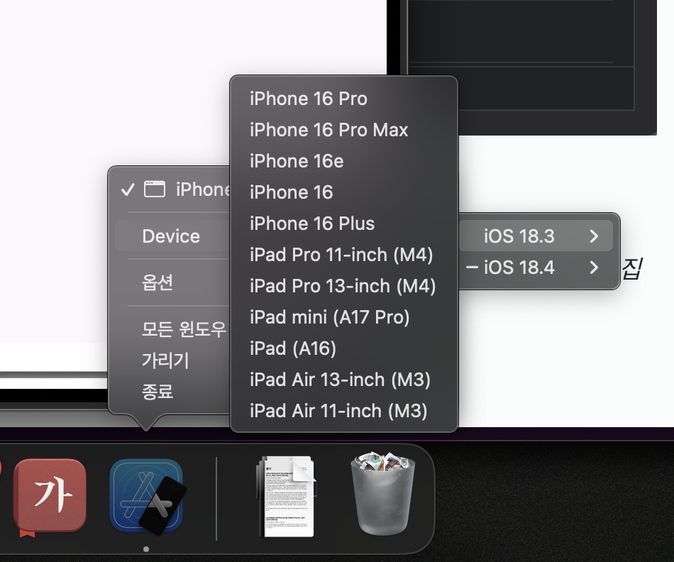 시뮬레이터는 IOS 18.4 XCODE는 16.3