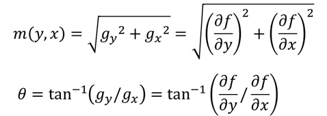 를 이용하면 에지의 크기 와 방향 를 구할 수 있습니다.