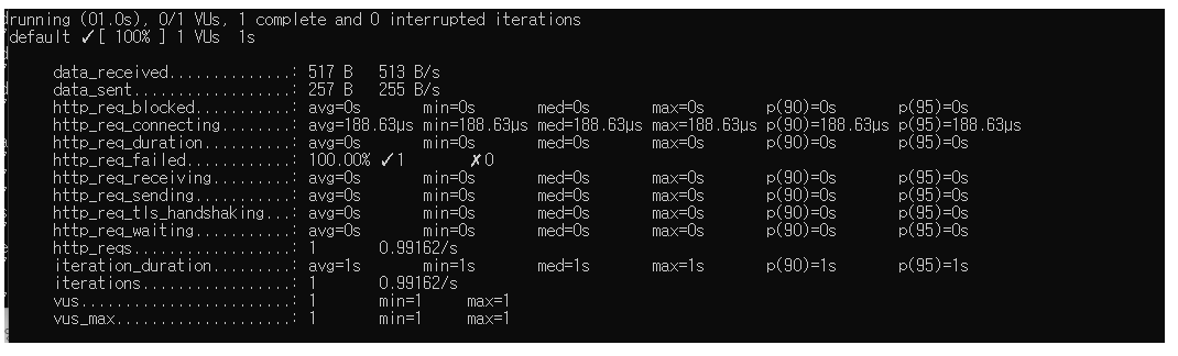 $ docker run --rm -i grafana/k6 run --vus 5000 --duration 10s - <k6.js